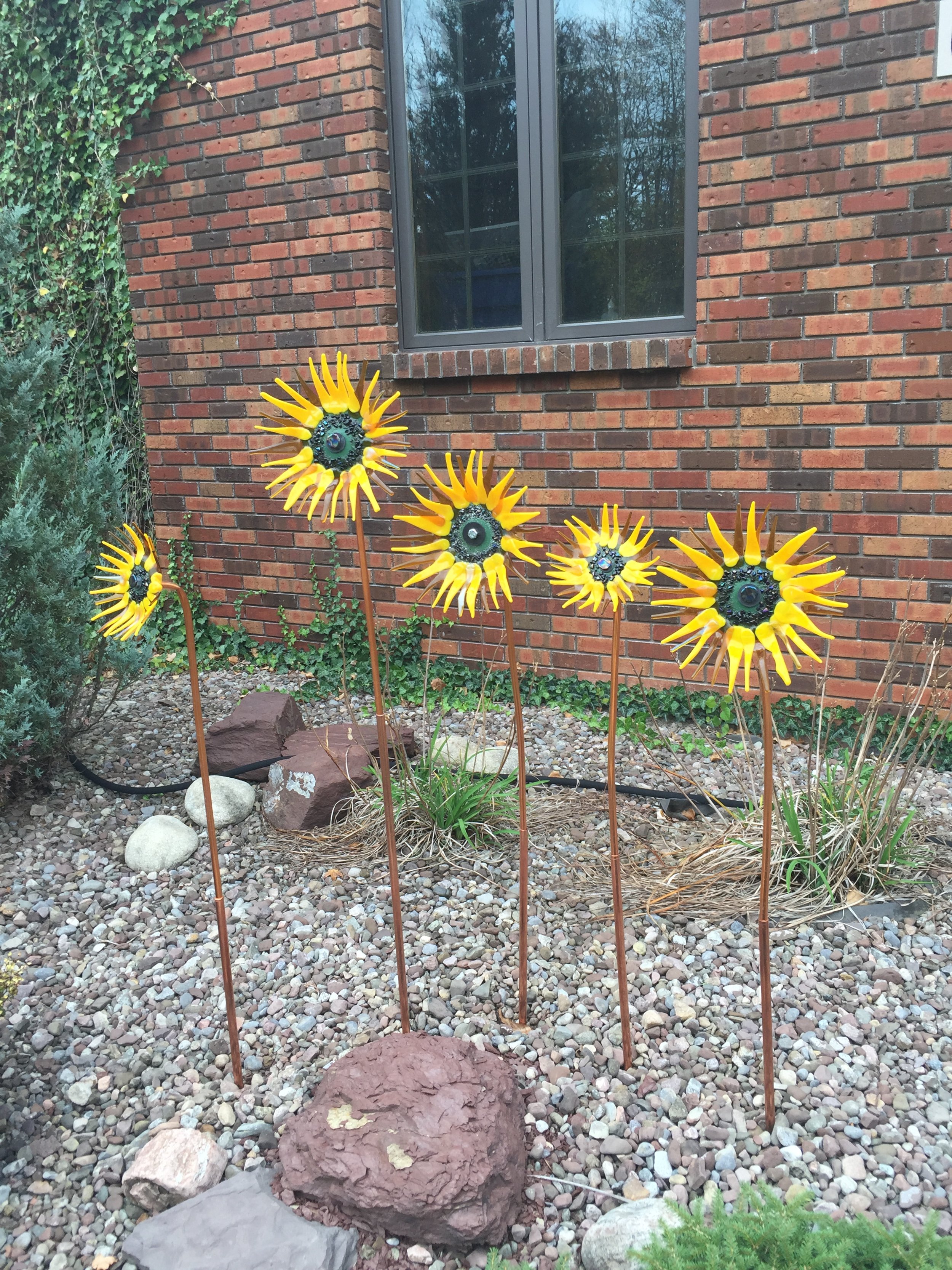 “Since relocating to Buffalo in 2006, Komal Prasad of Amaalgam has been infusing the community with color. Her functional fused-glass art includes back-splashes for kitchens, wall art for homes and offices, serviceable tableware and her latest creations, floral sculptures in glass. Many sculptures feature elements depicted larger-than-life, like miniature forget-me-nots blown up to gigantic twelve-inch flowers, and huge, dazzling sunflowers injected with iridescent glass. Standing atop copper “stalks,” these beauties add color and interest to landscapes year-round. Prasad’s sculptures are displayed in her personal gardens and can be viewed by appointment. Other work can be viewed at her website, www.amaalgam.com, and is available in the Burchfield Penney Museum store." By Annette Redican